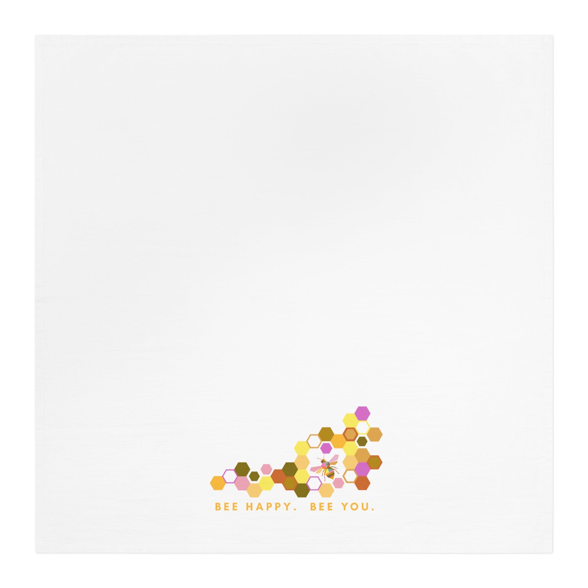 Bee Happy Bee You Tea Towel — Floral Honeycomb Kitchen Towel
