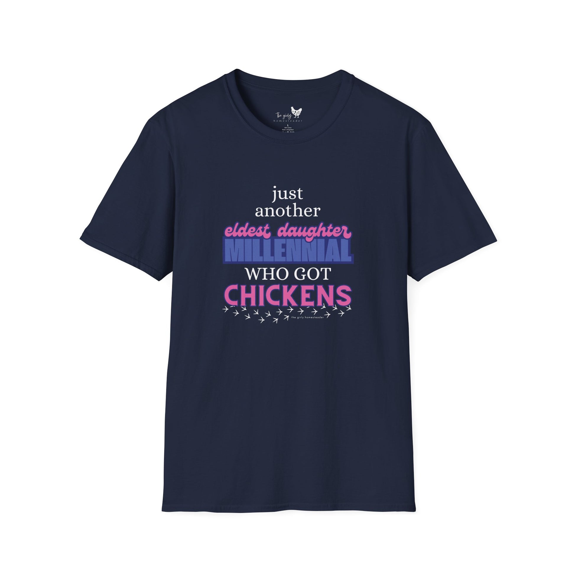 Ideal for millennials and chicken enthusiasts alike, this shirt captures a fun, playful spirit that resonates with those who appreciate humor and laid-back vibes. Original design created by The Girly Homesteader.