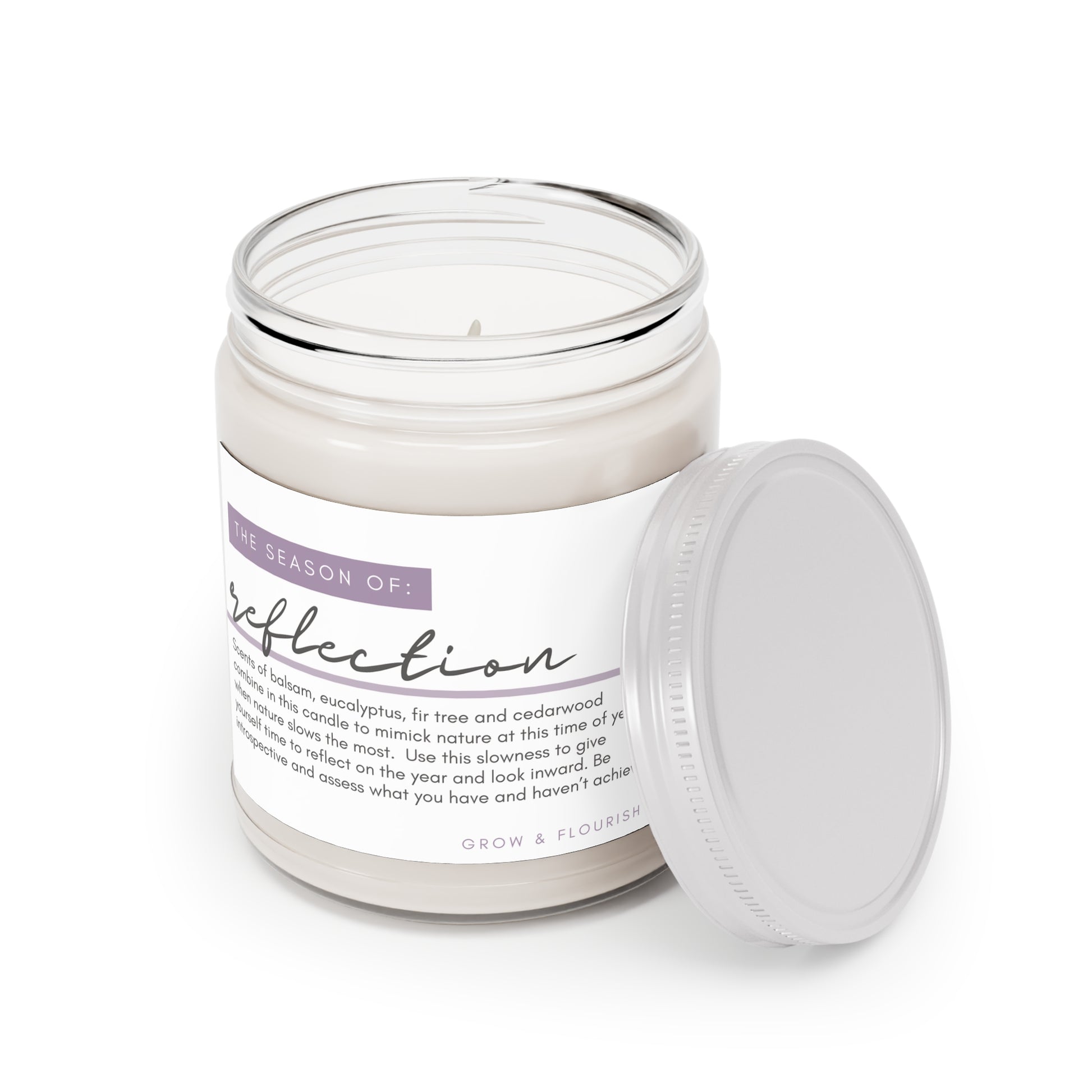 Amplify the mood of your seasonal planning sessions by lighting an all natural soy candle that mimics the seasons scent and inspires your goal setting. This eco-friendly, non-toxic formula pairs perfectly with the mini season of Reflection with notes of balsam, crisp eucalyptus, fir tree branches and cedarwood.